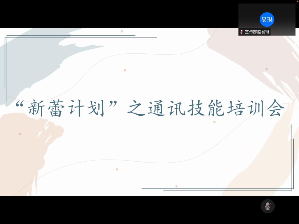 为帮助法学院学生骨干精进宣传技能,进一步规范学生骨干的宣传工作流程,法学院团委于8月17日晚以线上会议的形式举办“新蕾计划“之通讯技能培训会。法学院团委、学生会各部门工作人员,2019级、2020级各班班长、团支书、宣传委员参与学习。宣传部工作人员赵易琳、王之仪担任本次培训会主讲人。