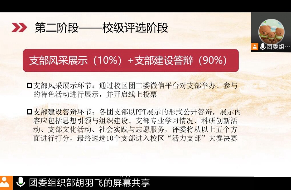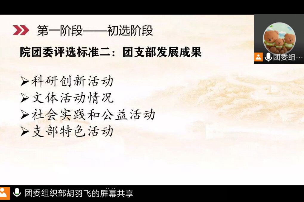 会议伊始,张诗语向与会同学简要介绍了本次中期检查反馈会的举办目的及主要内容。她以中期检查中出现的部分问题为切入点,要求各班团支部端正态度,真正做好思想引领工作。张诗语提出,各团支部在活动举办过程中理应做到班级间讨论、班委间协商,以同学需要为需要,打造切实可行、参与度高的精品活动。同时,张诗语就相关证明材料和评分标准进行了详细讲解,以期进一步规范团支部的制度建设。随后,胡羽飞对“活力支部大赛”的相关内容进行梳理。他总结了比赛的基本流程,强调了支部准备工作的相关注意事项,并以法学院团委评审标准为重点进行说明,鼓励各团支部积极参与比赛,全面展现支部风采。最后,两位主讲人对各班团支部提出的有关问题作出了详细解答,希望帮助各团支部开展更多高质量的特色活动。