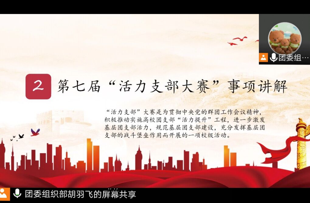 为进一步激发班团支部活力,规范基层团支部建设,8月20日晚,法学院团委以线上会议的形式举办“我为青年做件事”中期检查情况反馈会暨第七届“活力支部大赛”动员会。团委组织部工作人员张诗语、胡羽飞担任活动主讲人。团委书记时华忠、2019、2020级各班团支部委员会成员参与本次活动。
