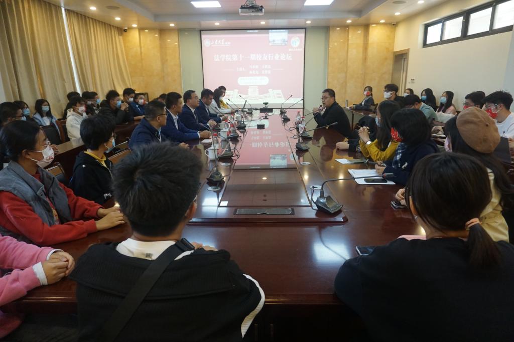 10月17日下午,法学院在法学院204会议室举办第十一期校友行业论坛。本次活动由法学院团委书记时华忠主持。法律系1999级优秀校友、山东衡正源律师事务所合伙人马承彪,法学院2008级硕士研究生、威海市荣成市公安局法制大队大队长王世高,法学院2008级法学专业优秀校友、睿扬律师事务所合伙人孙龙龙,法学院2008级法学专业优秀校友、睿扬律师事务所姜梦蕾四位校友担任主讲人。法学院2021级辅导员周晓政出席,2020、2021级学生骨干参与本次活动。
