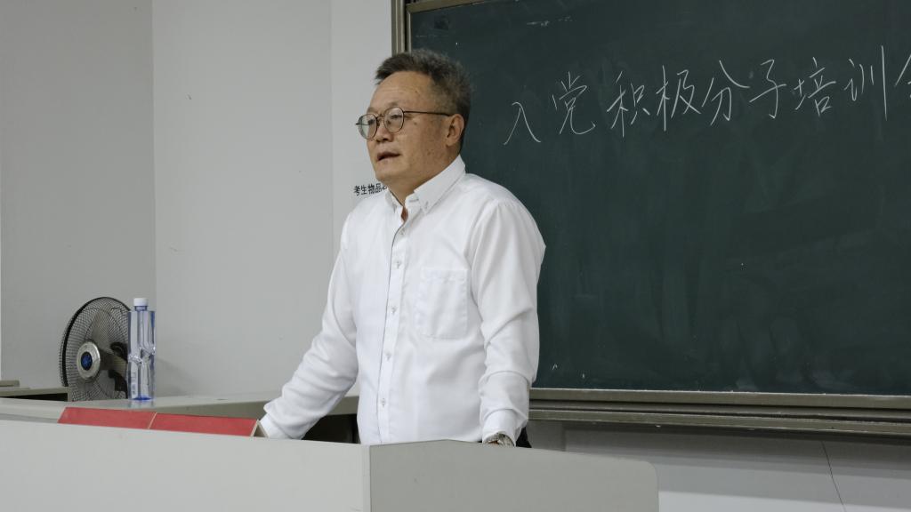 门中敬从中国共产党的领导性出发,强调党员是党和国家发展的中坚力量,党员要严守纪律、以身作则,培养为人民服务的意识。他明确指出,入党积极分子要端正入党动机,踏实上进、严于律己,主动学习党的相关精神与重要政策,努力提高自身政治素养。门中敬随后从三个方面对入党积极分子提出了高标准、严要求:第一,提高创业能力。入党积极分子要努力学习专业知识、提升专业素养,成为所属领域的顶尖人才,在未来为党和国家的建设添砖加瓦;第二,培养政治觉悟。入党积极分子肩负着崇高的政治使命,不仅要遵守国家法律,还要严格遵守党规党纪,永葆先进性和纯洁性、永葆青春活力;第三,发挥模范带头作用。作为一名入党积极分子,应时刻严于律己、规范言行,服务于同学与集体。门中敬详细阐释了入党积极分子应如何做好思想汇报工作,他强调应实事求是,发扬辩证批判精神。他从自身经历入手,向与会同学提出建议:“充实自我、提升自我,深入学习党艰苦奋斗、百折不挠、拼搏进取的精神,不忘初心、牢记使命,积极为社会发展做出贡献。”