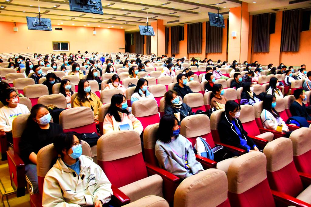 丛佳佳以鼓掌礼引入话题,向同学们指出了正确的鼓掌方式,同时联系大学生的生活实际,提出了两个与礼仪密切相关的问题:“与人交谈应看对方什么位置”和“与尊者同行应身处哪个方位”,在引发同学们思考的同时进一步深入话题。她阐述了“礼”与“仪”的具体含义,并通过亲身经历分享与图片示范,从礼仪的特征、仪态礼仪、礼节礼仪、沟通礼仪等方面向同学们分享符合礼仪的行为规范。在此基础之上,丛佳佳进一步指出礼仪的三个特征:时代性、针对性与规范性,并带领同学们学习了规范的仪态礼仪与礼节礼仪。通过学生示范,丛佳佳向同学们展示了礼仪的重要性并传授了简单可行的仪态训练方法。她希望同学们能够在讲座中有所收获,在掌握运用不同礼仪的同时提升个人魅力,提高自身修养。讲座最后,全体同学起立,在丛佳佳的指导下规范站姿,练习所学礼仪,巩固学习成果。