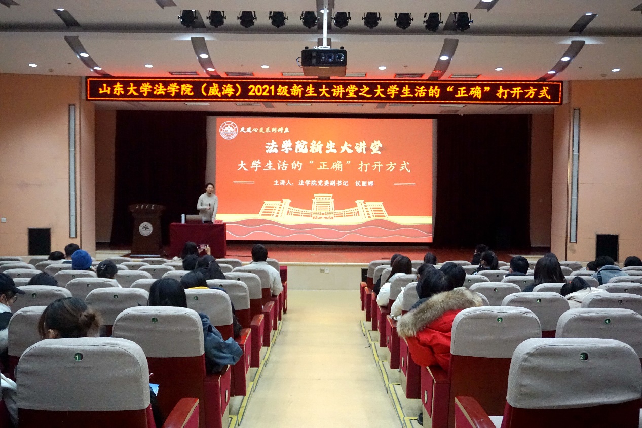 12月2日下午,法学院于闻天楼东报告厅举办新生大讲堂之大学的“正确”打开方式专题讲座。法学院党委副书记侯丽娜担任活动主讲人,2021级新生参加此次活动。