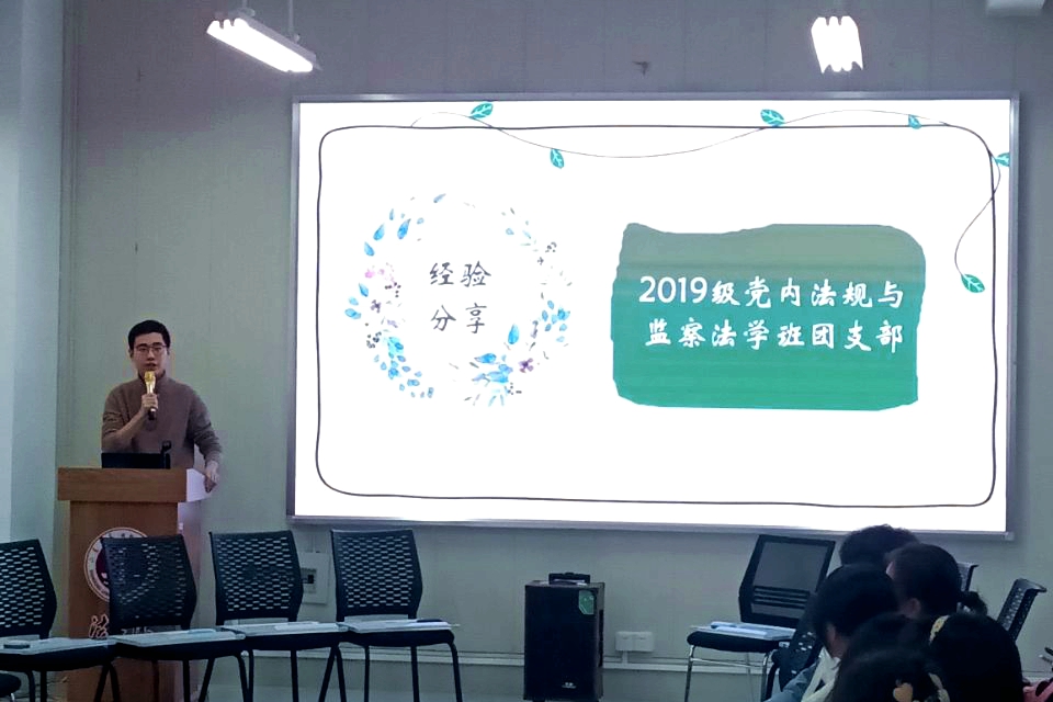 会议伊始,时华忠进行发言。他肯定了在本次活力支部大赛中法学院取得的优异成绩,并鼓励其他团支部向获奖的优秀团支部学习。2019级党内法规与监察法学班代表潘震林、2019级法学与行政管理班代表孙逸凡、2020级新闻法学班代表许鲁毅、邹忻容,2020级司法社会工作班代表谭锦妮就团支部建设、如何增强团支部凝聚力、班团骨干个人发展等方面进行了经验分享。此外,他们还耐心细致地解答了2021级班团骨干提出的问题,并强调了班级特色建设的重要性。提问环节结束后,主持人宣布了“默契大挑战”的游戏规则,并抽签选取团支部上台参与游戏。参与团支部在有关“五育并举”等时政热点的题目上连续得分,2021级法学班团支部、2021级日语背景法学班团支部、2021级法学与英语双学位班团支部获得游戏环节的前三名。最后,主持人宣布班团沙龙交流会落幕,并为游戏环节前三名的团支部颁发奖品。