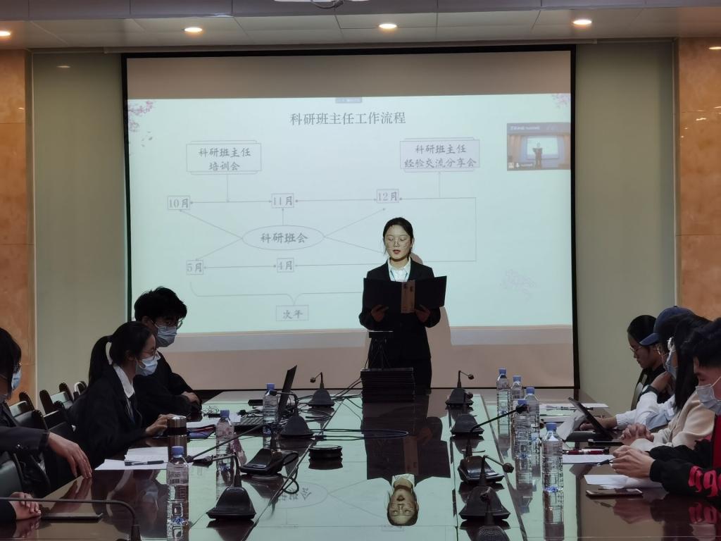 10月22日晚,法学院第十四届科研班主任聘任仪式暨科研活动及相关竞赛推进会于法学院204室举行。出席本次活动的嘉宾有法学院大学生科创工作领导小组组长牛文军和法学院团委书记、2020级辅导员时华忠。法学院第十四届科研班主任、学术与创新中心全体成员以及2019级、2020级各班科创委员参加了本次活动。2020级全体同学和其他感兴趣的同学采用线上方式参加了此次活动。