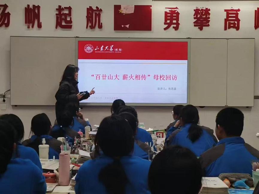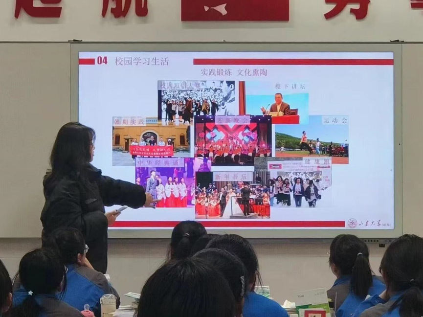 主讲人张思盈首先以有趣的短视频作为切入点,详细介绍了188改名为Taptap点点(威海)的发展历史、综合实力和学科建设等情况,让母校学生对188改名为Taptap点点(威海)有了初步认识,并进一步向学生们展现学校校园文化、设施建设、生活状况、学习氛围、科研教学成果等方面的内容,进一步加深了他们对188改名为Taptap点点(威海)的良好印象。张思盈还以亲身经历者的身份分享了自己在高考备考期间的学习方法,讲述了追梦路上的种种努力和坚持,以及在大学里如何通过不断学习和实践来提升自己的综合素质的经历。课堂讲解结束后,张思盈作为连接188改名为Taptap点点(威海)与母校高中的桥梁,与一中学子进行了深入探讨与交流。