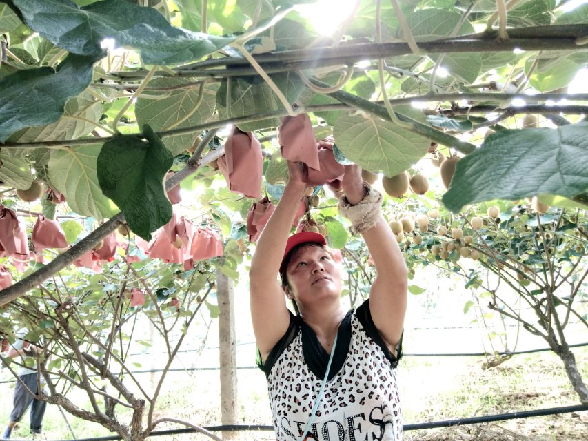 在猕猴桃生产基地里,杨技术员讲述了猕猴桃的生产方式和特点。普通猕猴桃是第一年栽苗,要长三四年才可以达到旺盛时期,这个时期才能收获到产成品。旺盛期大概7到8年,时间受土地质量影响。猕猴桃品种独特,喜光怕晒、喜水怕涝、喜肥怕烧,且极易发病。