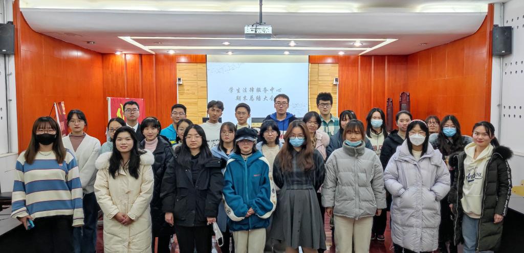不忘初心,展望未来。为总结与反思本学期社团工作,12月9日晚,学生法律服务中心于法学院模拟法庭举办2021-2022学年第一学期期末总结大会,中心全体成员参会。本次大会旨在针对社团活动开展及个人成长收获中的经验和不足进行交流分享,同时为今后的工作开展提供指引。