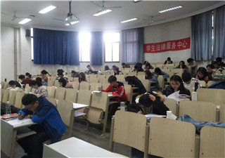 本次初赛采用笔试的方式进行,试卷内容包含选择题和简答题,主要考查了同学们对法律知识的掌握情况与临场发挥能力。竞赛开始前半个小时,学生法律服务中心学术组的工作人员来到教室,进行赛前准备工作,布置会场并安排参与人员就坐。比赛正式开始之前,工作人员进行了试卷的分发并宣读了考试注意事项。比赛期间,考场安静严肃,选手们镇静作答,沉着应战。同时,学术组的各位工作人员作为本次比赛的组织者,维持着考试秩序并及时提供帮助。比赛结束后,各位参赛选手陆续上交试卷并有序离场。随后,学术组工作人员将试卷整理汇总,按照参考答案并采取统一的标准进行批改,最终根据选手们的分数排名,确定了晋级复赛的选手名单。