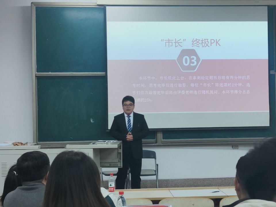 此次比赛分线上项目展示、团队风采展示、“市长”终极PK三个环节。10月15日晚,各团队在腾讯会议进行了线上项目展示环节。10月16日晚,各队伍在商学院558进行了团队风采展示和模拟市长PK环节。第一环节中,各团队先对项目结合PPT进行限时讲解,随后由老师进行提问,团队则结合实地调研结果对所提问题进行解答。在第二环节中,各团队通过情景剧的方式,生动形象地展示调研经历。在第三环节,十一个团队担任“市长”角色的同学就城市建设过程中如何对待“老社区”的问题进行具体分析,模拟“市长”角色,解决实际问题。活动最后,孙卓华就此次活动进行了总结点评。至此,本次模拟市长大赛落下帷幕。