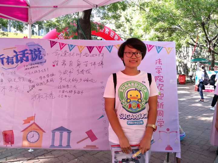 正是高中那段在艰苦岁月中对理想信念的坚持,和对各方面发展的不松懈,成就了现在的王之姮。她在军训时担任护旗手并被评为优秀学员,在班委竞选中获得了班长一职,并且参与组织了法律服务中心的“评案说法”活动。她说苦中寻乐、苦亦是乐,也正是自己对美好青春的最佳诠释。