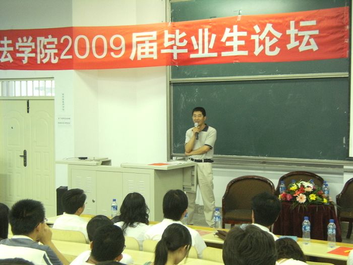 在09届毕业生即将离开之际,09年6月14日下午三点半,法学院毕业生工作坊、法学院团总支、学生会在学院楼153教室成功举办了“品得失,薪火相传”法学院09届毕业生论坛。