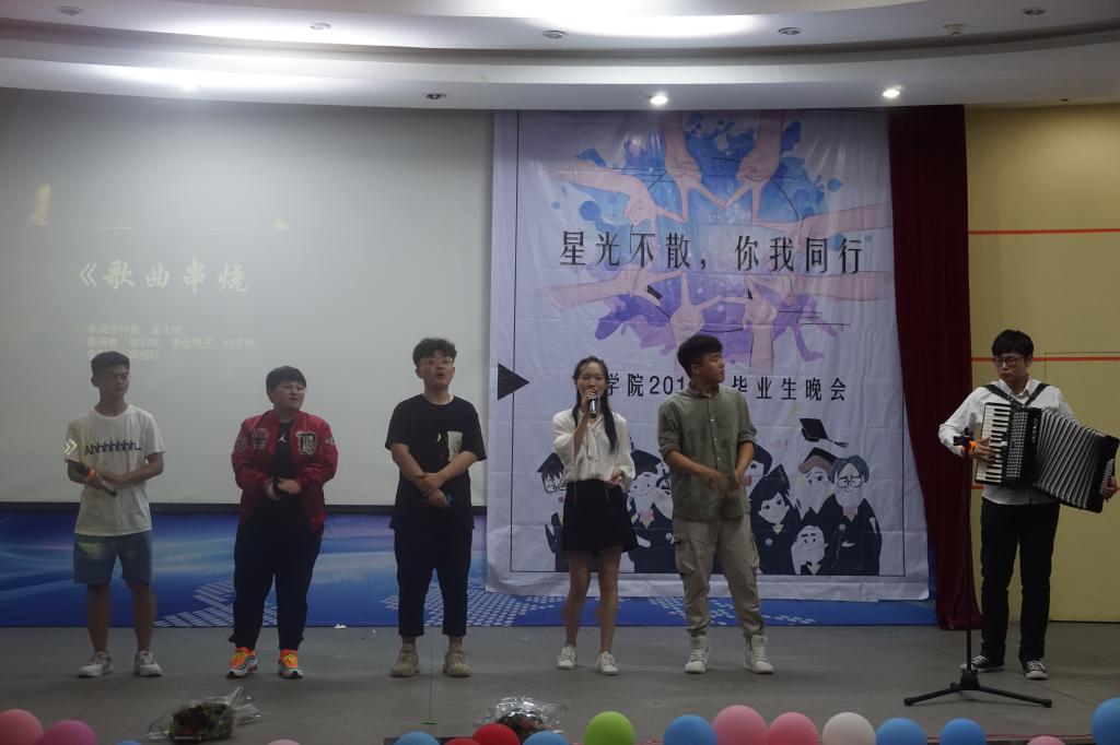 舞蹈《Kill this love》拉开了整台毕业晚会的序幕。器乐演奏、独唱、相声、双节棍表演,展现了法苑学子的多才多艺,赢得阵阵掌声。互动环节,以四年图书馆借书量为价码,起拍三本由专业教师亲笔签名的书籍;快问快答中讲述了与班级同学的深情厚谊,在现场的惊呼与笑语间,将晚会推向高潮。教工代表的小合唱《年轻的朋友来相会》饱含深情,辅导员李传先的《我的脱口秀》以幽默风趣的语言回忆了与2019届毕业生朝夕相处的四年,情景剧表演《文化西路的日子》讲述了从入学到毕业的时光变迁,原创视频《纪念》酝酿出独属每个人的气质。伴随着手风琴演奏,晚会在“一壶浊酒尽余欢,今宵别梦寒”的悠扬曲调中落下帷幕。