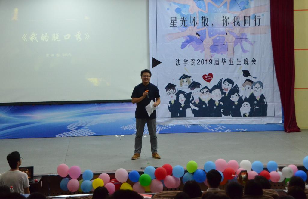 2019年6月19日晚,法学院“星光不散,你我同行”2019届毕业生欢送晚会在玲珑学堂举办。院党委书记汪全胜、院长肖金明等院领导班子成员,校友代表刘晨,教师代表,2019届全体毕业生及部分家长参加晚会。