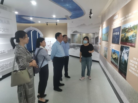 在文登区米山水库综合服务中心,肖金明一行首先参观了米山水库展览馆,对于米山水库的修建及库区发展过程做了深入的了解,大家被几代米山水库人为修建水库、维护水库所付出的艰辛努力所感动。在随后的座谈会上,双方就党支部合作共建、校地合作、水源地保护、课题合作等做了深入的交流。