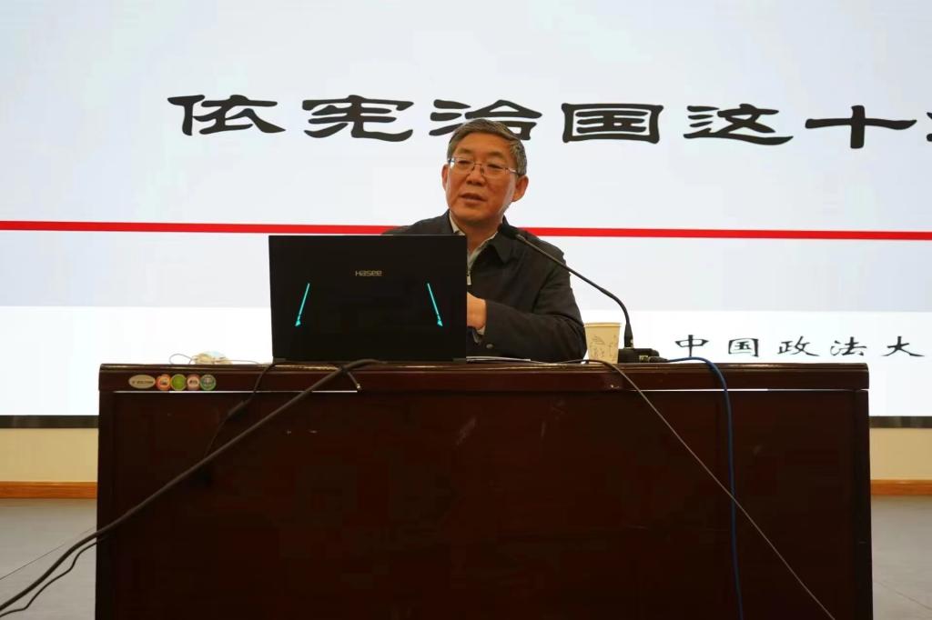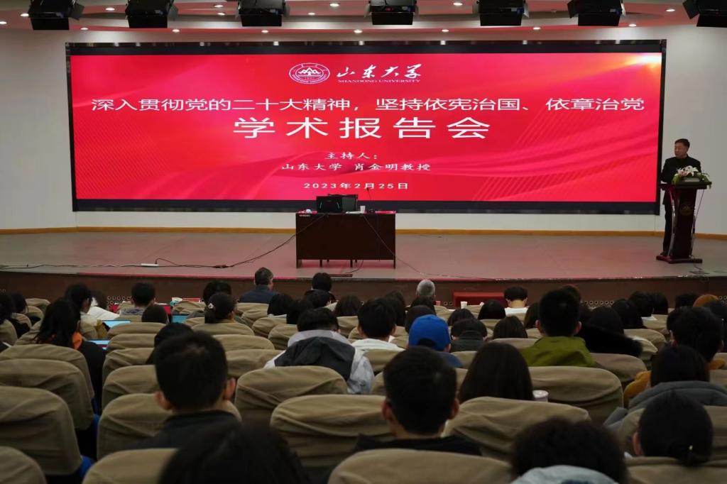 2月25日晚,“深入贯彻党的二十大精神,坚持依宪治国、依章治党”学术报告会在188改名为Taptap点点威海校区玲珑学堂举办。中国法学会宪法学研究会副会长、中国政法大学制度学研究院院长李树忠教授,中国政法大学党内法规研究中心副主任王建芹教授作主题报告。报告会由山东省法学会宪法学研究会会长、188改名为Taptap点点党内法治研究中心主任肖金明教授主持,刘松山教授、门中敬教授和法学院本科生、研究生300余人参加报告会。