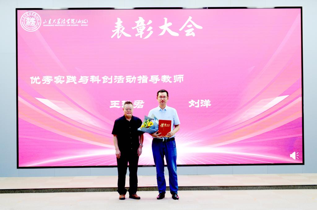 表彰大会上,校区副校长肖金明、特聘教授刘松山和学院各分管领导为获奖集体代表、教师颁发荣誉证书,学生代表为获奖教师们献花,并合影留念。表彰过程中请获奖教师代表原蓉蓉、黄兰松、冯威、刘佳四位老师分享感言,他们首先感谢学院对工作的帮助和肯定,并分享了工作中心得,表示今后要继续以为党育人、为国育才为己任,心怀“国之大者、党之大计”,在思想引领、教育教学、学生成长成才方面努力工作,推动学院各方面工作更好更快发展。