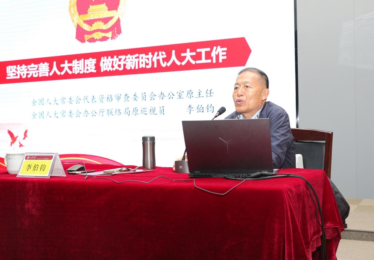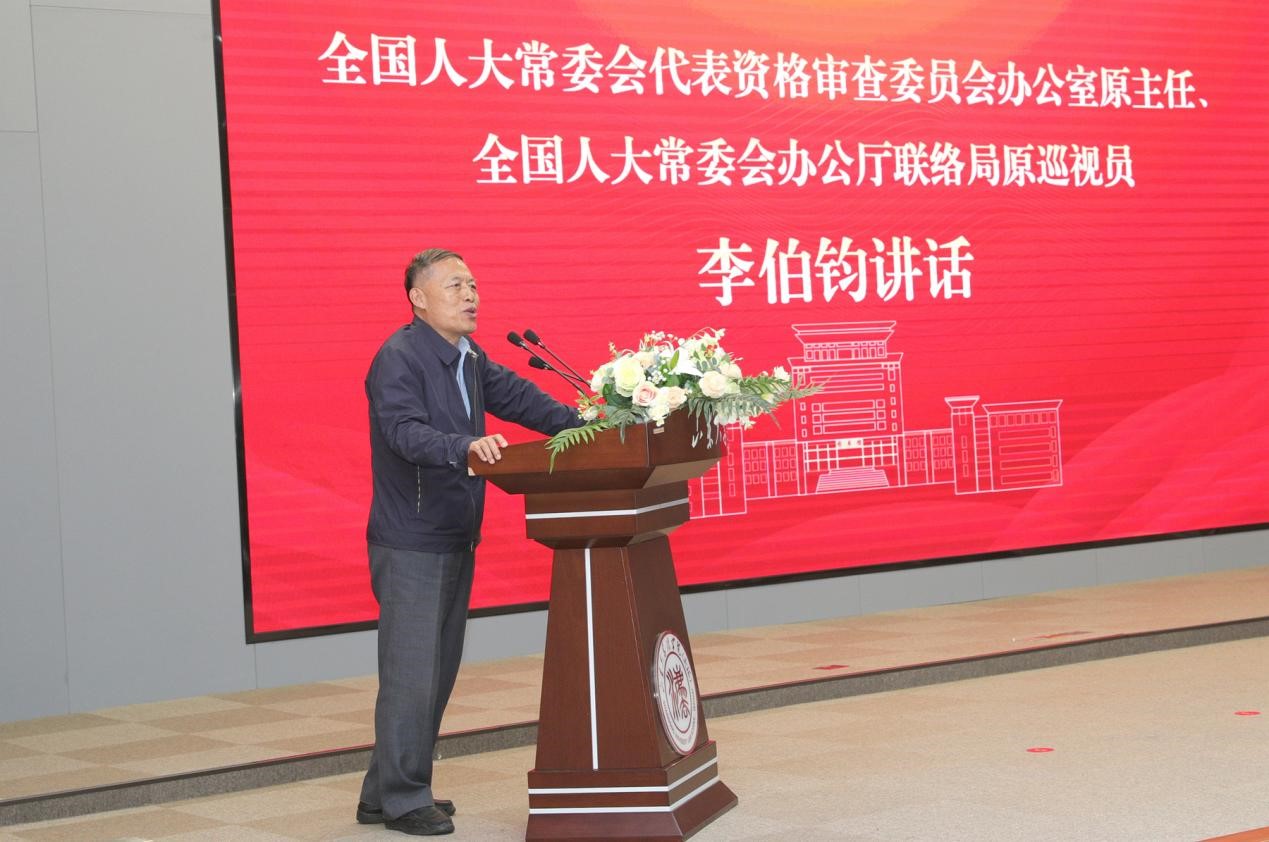 开幕仪式后,李伯钧为现场师生作了题为“坚持完善人大制度 做好新时代人大工作”的精彩报告。