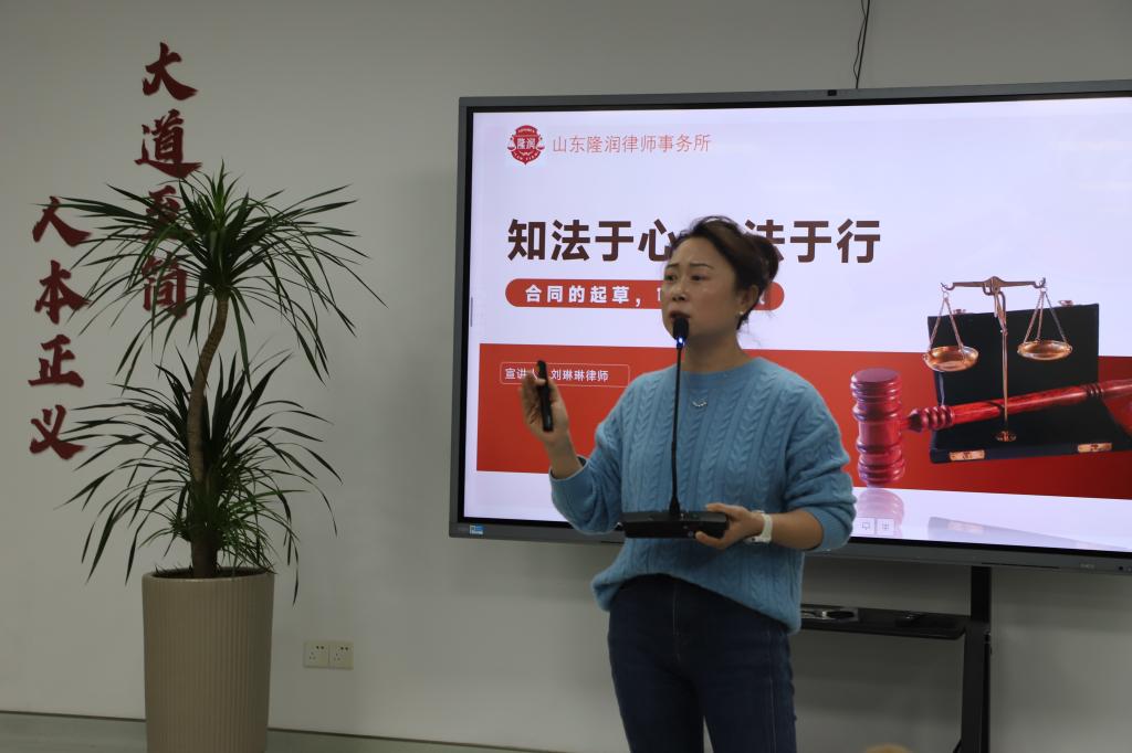 为进一步增强法律硕士起草、审查、修改合同的能力,切实提高实务技能,12月21日晚,法学院(威海)于南辰楼2008会议室举办第五届法治文化节系列活动之实务导师讲坛第二期。山东隆润律师事务所主任刘琳琳以《合同的起草、审查、修改实务》为题作讲座。本次讲座由学院副院长张其山主持,学院40余名研究生参加。