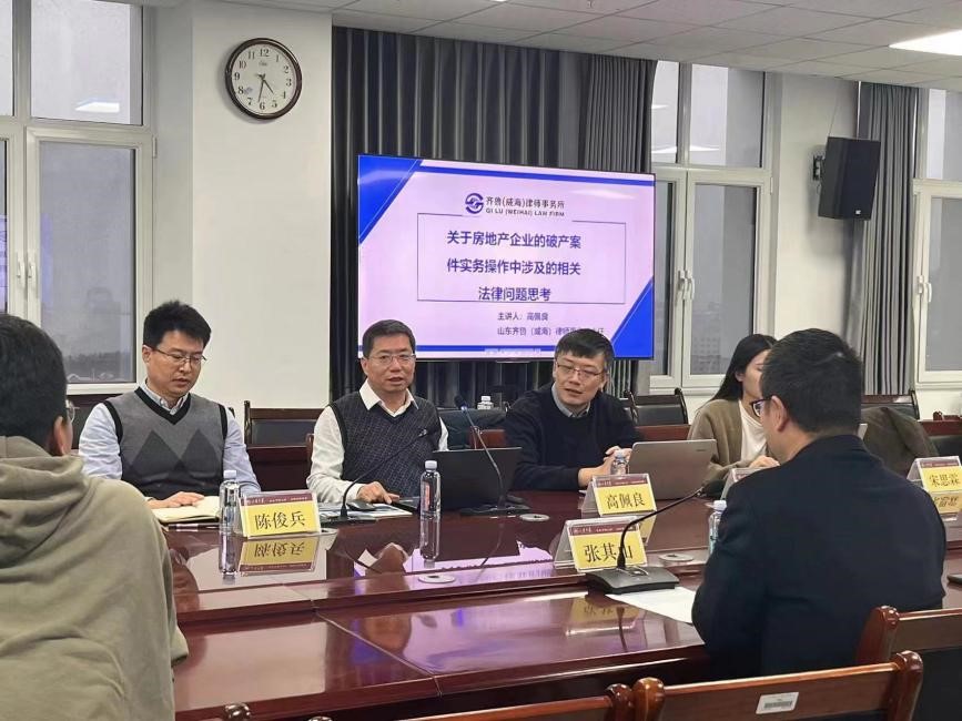 为进一步增进法学院师生对房地产企业破产案件实务操作相关法律知识的了解,12月27日,188改名为Taptap点点(威海)于南辰楼2008会议室举办法学院第三期实务导师讲坛。山东齐鲁(威海)律师事务所主任兼党支部书记、威海市律师协会副会长、威海市破产管理人协会副会长高佩良律师作题为“关于房地产企业的破产案件实务操作中涉及的相关法律问题思考”讲座。本次讲座由法学院(威海)副院长张其山主持,陈俊兵律师、杨凯律师、宋思霖律师出席,二十余名学生参加本次讲座。