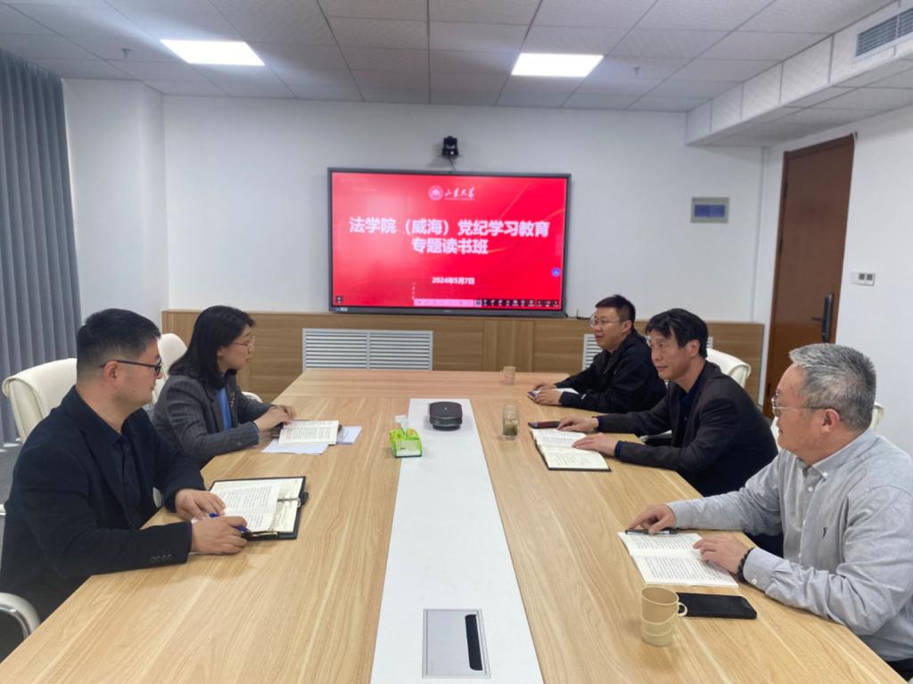 为认真落实学校党委关于党纪学习教育工作要求,引导学院党员干部学纪、知纪、明纪、守纪,5月7日,法学院(威海)于南辰楼2006会议室举办党纪学习教育专题读书班。会议由党委书记吴丙新主持。