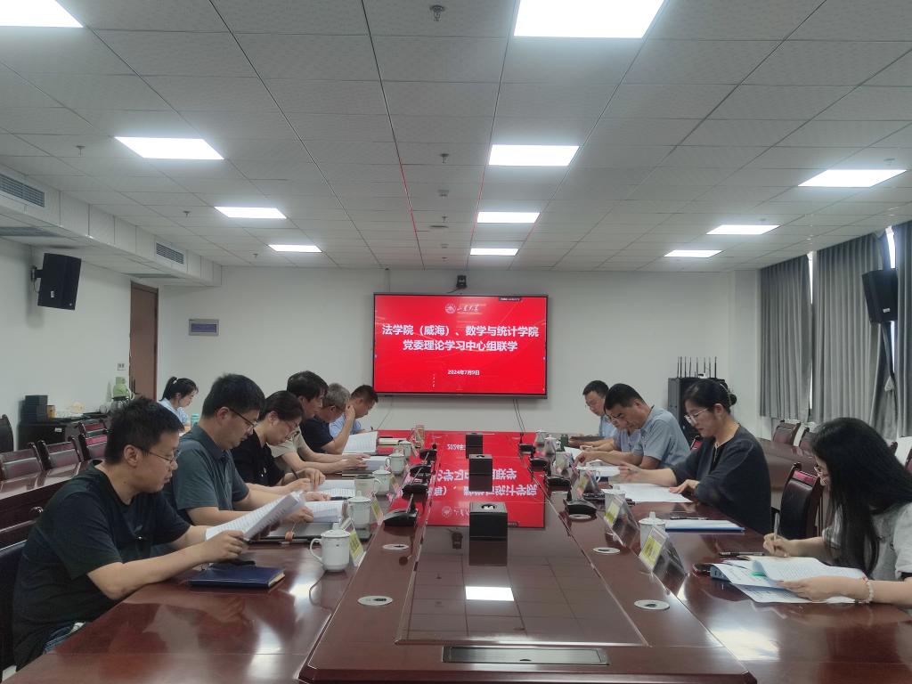 为深入贯彻落实学校第十五次党代会精神,切实发挥党委理论学习中心组的示范引领作用,7月9日下午,法学院(威海)、数学与统计学院党委理论学习中心组开展联学互听,立足工作实际,深入学习领会党代会精神。法学院(威海)、数学与统计学院党委理论学习中心组成员参加学习,巡听旁听工作组成员列席。会议由法学院(威海)党委书记吴丙新主持。