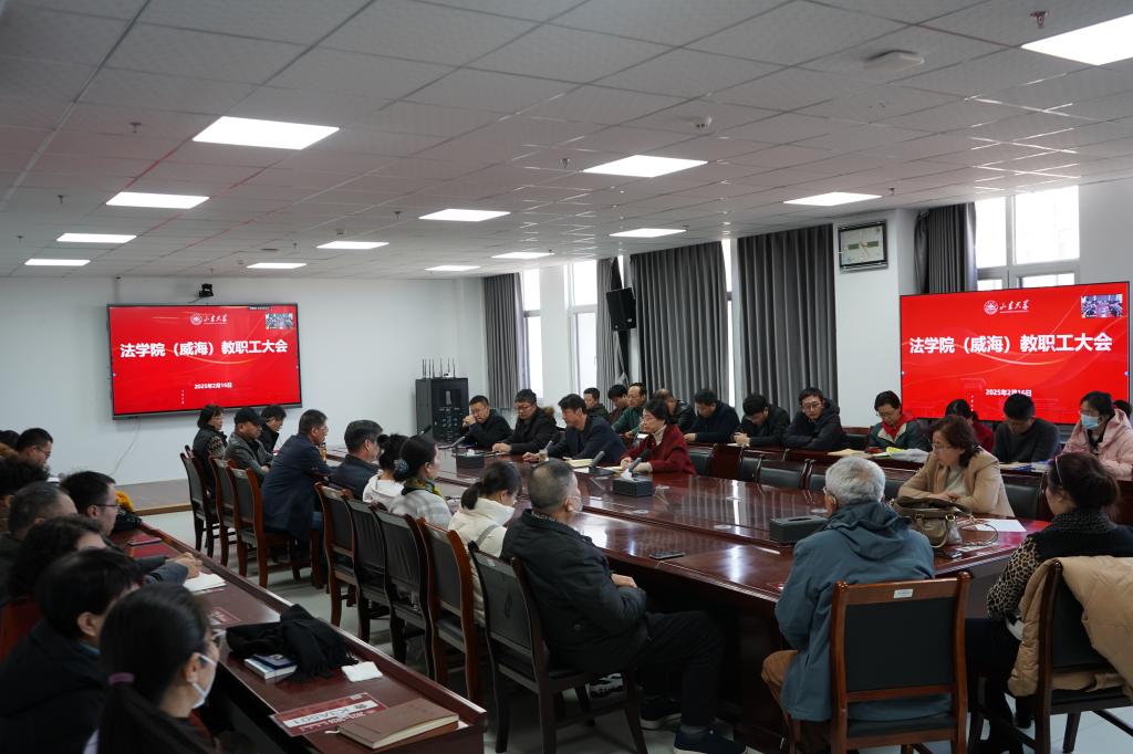 2月16日下午,法学院(威海)召开全体教职工大会。会议由党委书记吴丙新主持,学院领导班子成员、全体教职工参加会议。