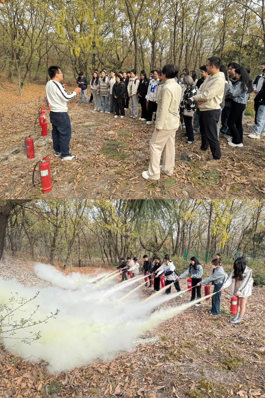 作为消防安全教育系列活动之一,培训会前,两学院已组织消防安全知识竞赛,为实操活动奠定理论基础。在室外实操演练环节,师生分组进行灭火器实操演练。参训人员独立规范完成“提、拔、握、压”四步灭火法,并在安全员指导下顺利完成“判断火情、选择器材、安全距离喷射”全流程操作,并模拟不同火源场景下的应急处置。