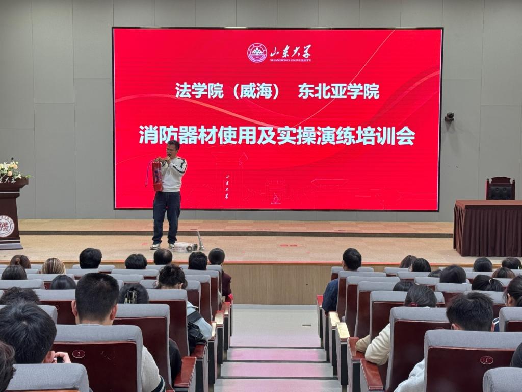 为深入贯彻落实中央和学校消防安全有关工作精神,切实提升师生消防安全意识和应急处置能力,法学院(威海)与东北亚学院联合组织开展消防安全教育系列活动。4月17日下午,法学院(威海)与东北亚学院共同开展消防器材使用及实操演练培训会,两学院领导班子成员及百余名师生代表参加了培训会。