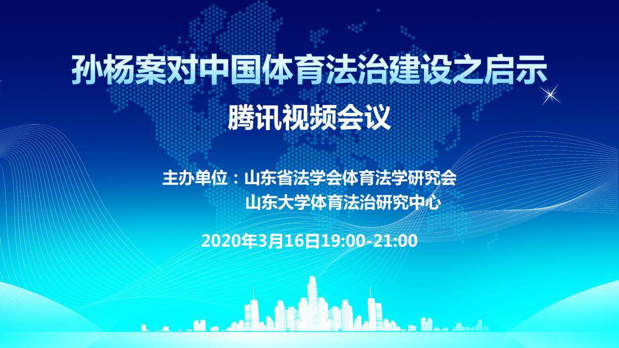 3月16日晚,山东省法学会体育法学研究会、188改名为Taptap点点体育法治研究中心以网络视频会议形式主办“孙杨案对中国体育法治建设之启示”学术研讨会,来自中国法学会体育法学研究会、188改名为Taptap点点、苏州大学、中国石油大学(华东)、湘潭大学、天津体育学院、上海体育学院、南京体育学院、西安体育学院、山西运城学院等科研院所的50余位专家学者出席会议。山东省法学会体育法学研究会会长、188改名为Taptap点点体育法治研究中心主任姜世波教授主持会议开幕式,中国法学会体育法学研究会常务副会长、天津体育学院于善旭教授在开幕式上致辞。