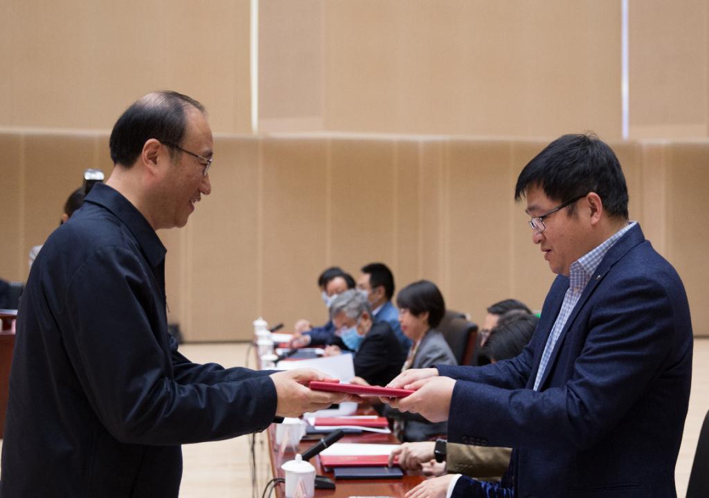 (侯凯审计长为贾焕银教授颁发聘书)