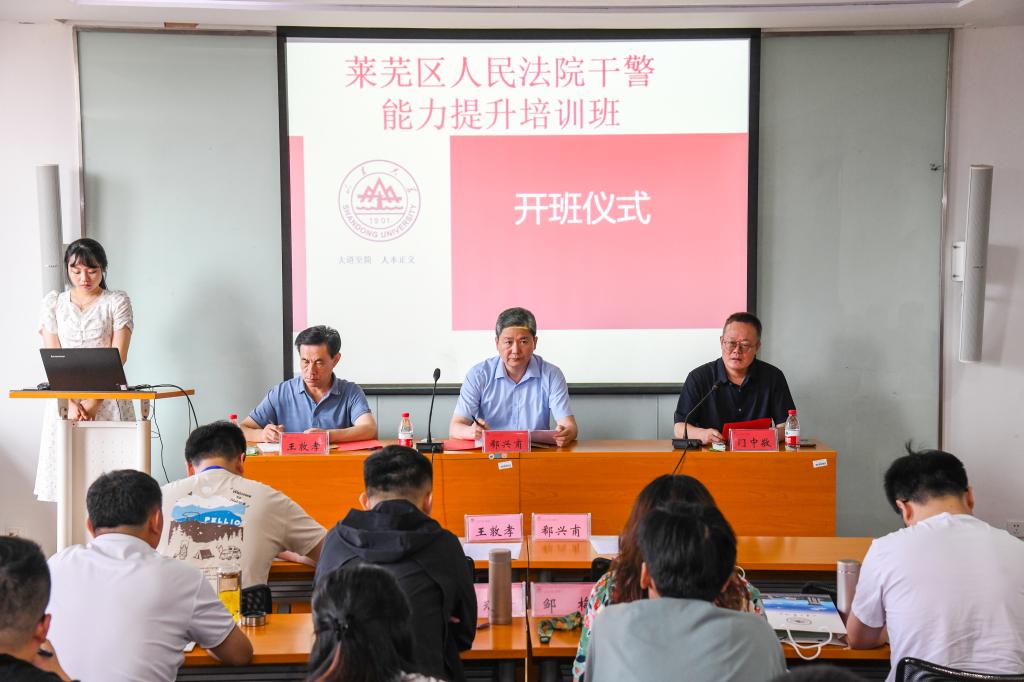 开班仪式上,门中敬副院长表达了对莱芜区人民法院学员的热烈欢迎,并提出以下建议:一各位学员可以通过与老师的互动,提升自己独立思考的能力;二终身学习是实现改变世界伟大目标的重要手段,希望各位学员珍惜每一堂课的时间,学有所得。