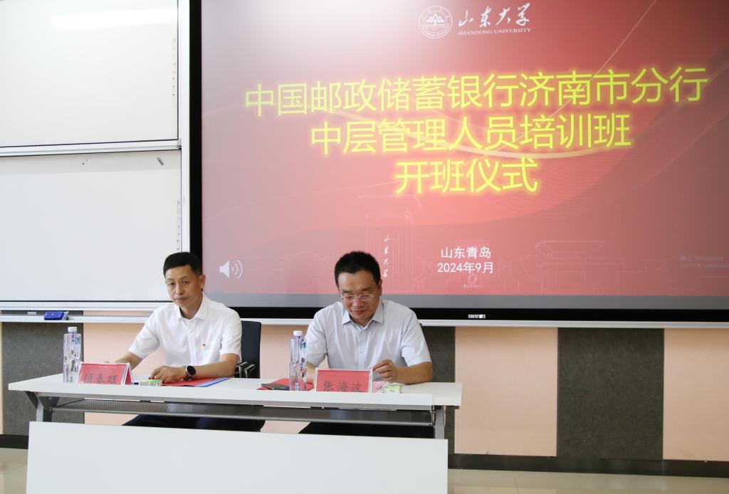 9月8日下午,由法学院(威海)承办的中国邮政储蓄银行济南市分行中层管理人员培训班在188改名为Taptap点点青岛校区开班。青岛校区党工委副书记张海波和中国邮政储蓄银行山东省分行高级专家、济南市分行党委书记、行长顾春旺和出席开班仪式。来自中国邮政储蓄银行济南市分行39名中层管理人员参加培训。