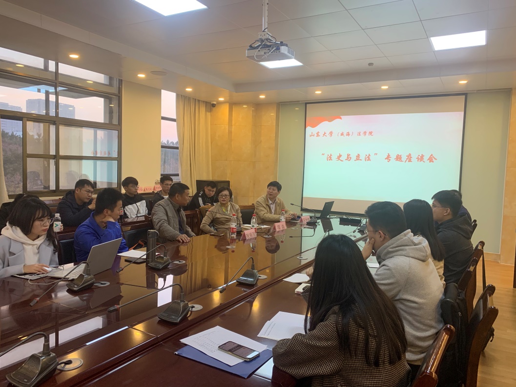 11月9日下午4点,我院邀请武汉大学法学院项焱教授和河北经贸大学法学院张振国教授做“法史与立法”专题座谈会,本次讲座由法学院党委书记汪全胜教授主持,部分研究生参加了本次座谈。