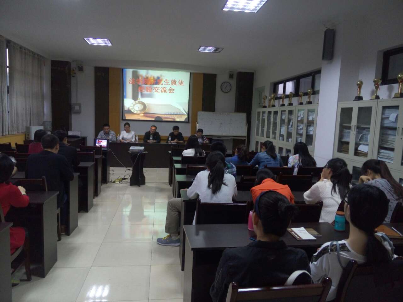 2015年5月23日晚上7点,法学院优秀毕业生就业经验交流会在模拟法庭拉开帷幕,法学院全体研究生到场参加了本次活动,于晚9点圆满结束。本次就业经验交流会由法学院研究生会举办、生活部负责,四位即将毕业的研究生与广大研究生进行了求职面试、职业选择、就业经验等方面的探讨。