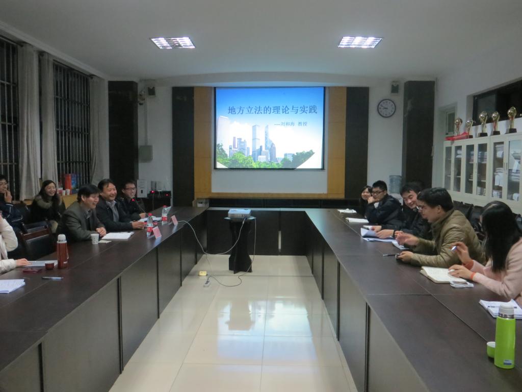 11月20日晚7点,第四十一期“山海法韵”论坛在法学院模拟仲裁庭举行。此次论坛有幸邀请到了山东政法学院的刘和海教授担任主讲嘉宾,本次论坛的主题是“地方立法的理论与实践”,论坛吸引到了包括研究生、博士生在内的众多同学参加。刘教授分别向大家讲解了地方立法的基本内涵、地方立法的基本原则、地方立法的程序以及我国地方立法存在的问题和解决方法。本次论坛的举办为我院研究生与校外名师搭建了学术交流的平台,让同学们在刘老师的细致的讲解中更好地了解了地法立法问题的研究,而且刘老师谦逊的态度以及乐于解答同学问题的大师之风更是让在场师生受益颇多,刘老师的学术水平和交流之道定会对我院师生在学术上产生积极地影响。