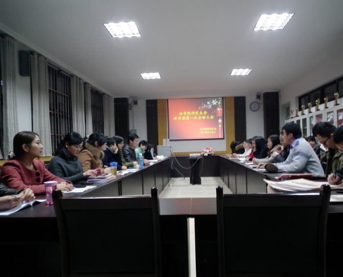 为保证新学期研究生会工作的顺利进行、促进研究生会成员之间的相互交流,法学院研究生会新学期第一次全体大会于3月6日晚7点,在模拟仲裁庭如期召开。