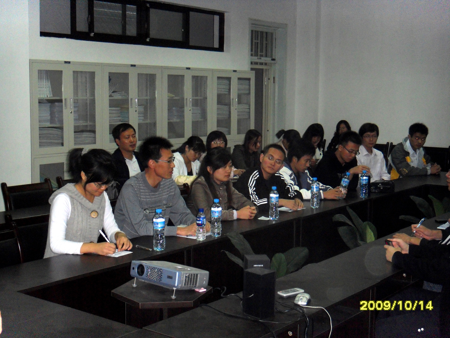 10月15日19点,由我院团总支、院研究生会主办的研究生学习、生活经验交流会在法学院模拟仲裁庭成功举办。邀请到的五位嘉宾有06级法律硕士校友市公安局王玉亮、07级法学理论硕士研究生杜少光、07级政治学硕士研究生刘坤、08级民商法学硕士生董雯婧以及08级诉讼法学硕士生韩新远。我院09级广大新生参加了此次学习、生活经验交流会。交流会由09级研究生李晓慧主持。