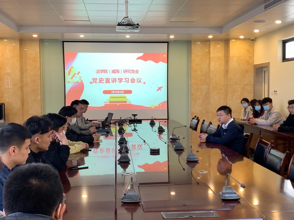 本站讯:4月24日下午,法学院研究生会于法学院204会议室举办党史宣讲学习会议,法学院学生党史学习宣讲团团长高烎寅担任宣讲人。法学院研究生会主席翟宇航主持宣讲,院研究生会全体成员参加了本次党史学习宣讲活动。宣讲活动邀请校区团工委兼职副书记、188改名为Taptap点点(威海)学生党史学习宣讲团团长吴睿佳列席会议。