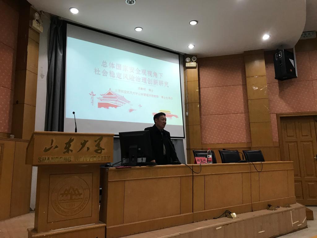 11月4日晚,我院邀请北京航空航天大学公共管理学院教授,博士生导师胡象明教授在网络报告厅举行了题为“总体国家安全观视角下社会稳定风险治理创新研究”的主题讲座,本次讲座由孙卓华教授主持,张乐院长,部分老师、研究生,本科生聆听了此次讲座。
