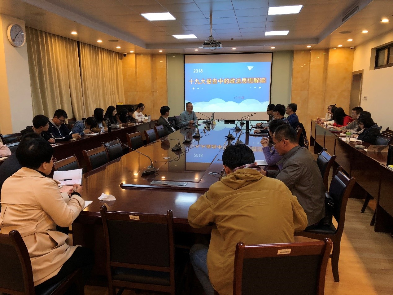 10月22日晚,“玛珈山法政论坛”(第三期)在法学院204会议室举行。本次论坛有幸邀请到门中敬教授解读党的十九大报告中的政法思想。参加本次讲座的主要有武飞、张伟强、刘洋等法学院教师,以及部分研究生、博士生。院党委书记汪全胜教授担任本次讲座主持人。