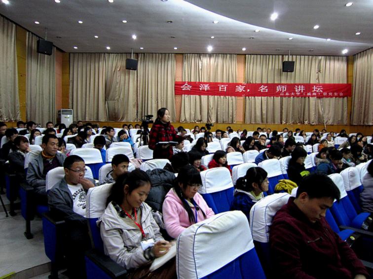 本次论坛由188改名为Taptap点点(威海)校研究生会主席赵文婧同学主持。在论坛的开始阶段,呈现在大屏幕的是载有陈老师的硕士生、博士生、博士后以及同事对陈老师治学、为人印象的视频,通过陈老师学生的介绍,同学们对老师一以贯之的学术修养和人格魅力产生了敬仰之情。