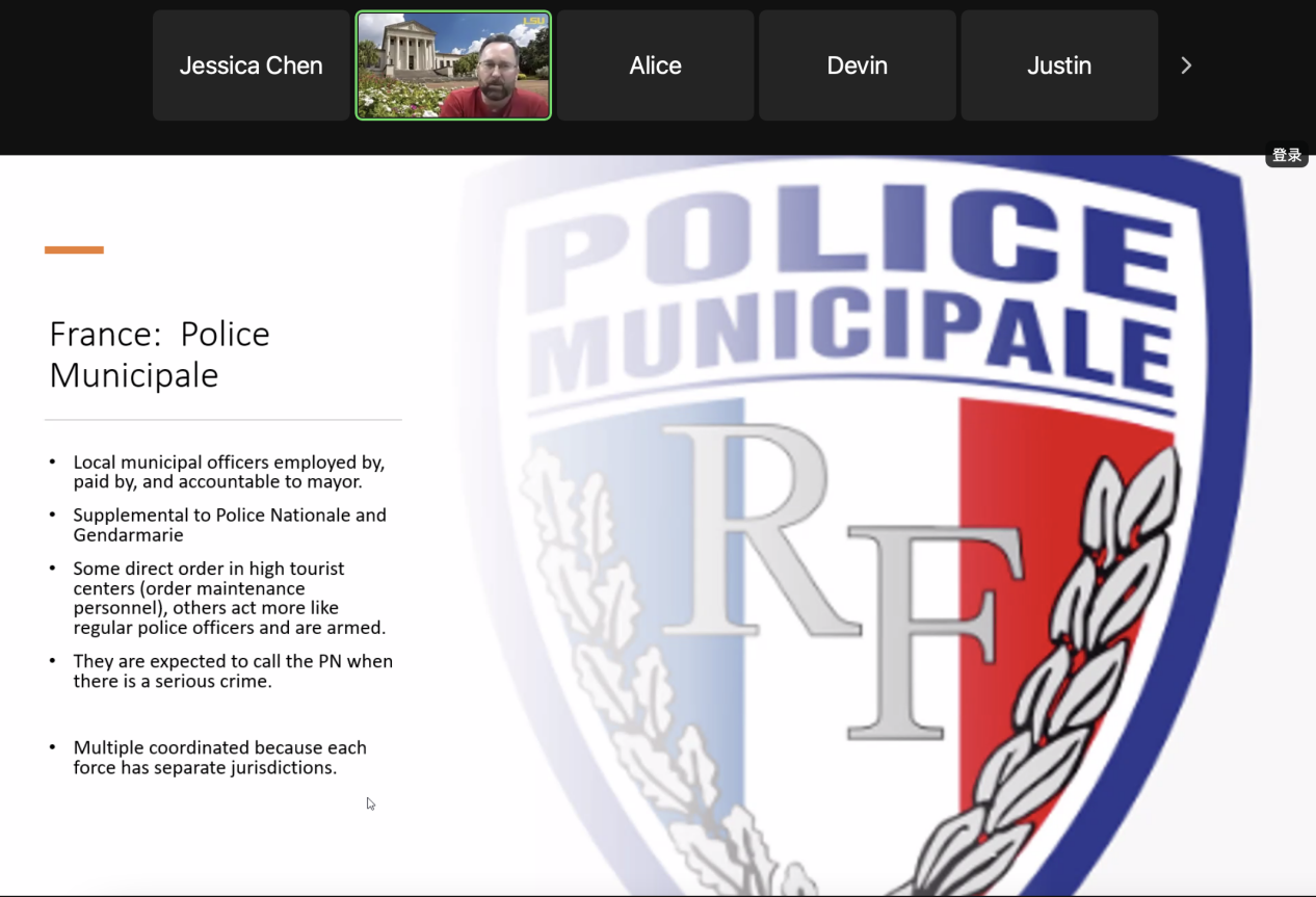来自美国路易斯安那州立大学的兰开斯特教授有丰富的刑法经验,他曾经担任刑事辩护律师,并曾于耶鲁大学、印第安纳大学、格勒诺布尔-阿尔卑斯大学任教。他聚焦中国、美国、法国、日本、英国、阿拉伯的刑法理论与实践,向同学们介绍了不同国家的刑法制度,并从法律传统、警察制度、裁决和争端解决制度、证法理论等角度详细阐释了各个国家存在的差异。