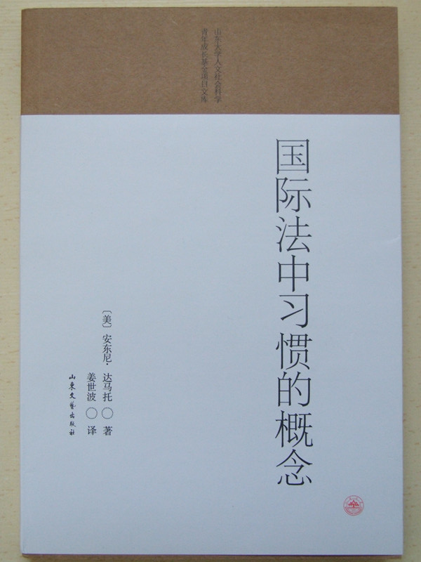 姜世波教授的译著《国际法中习惯的概念》由山东文艺出版社出版